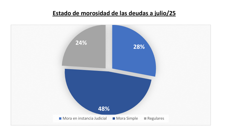 - 48% se encuentra en mora sin instancia judicial, es decir, con retrasos significativos, pero aún sin judicialización.