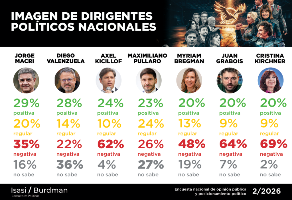 Según el análisis de la consultora, estos números lo colocan en una franja intermedia: lejos de los liderazgos más polarizados, pero con margen para crecer en visibilidad y reconocimiento.