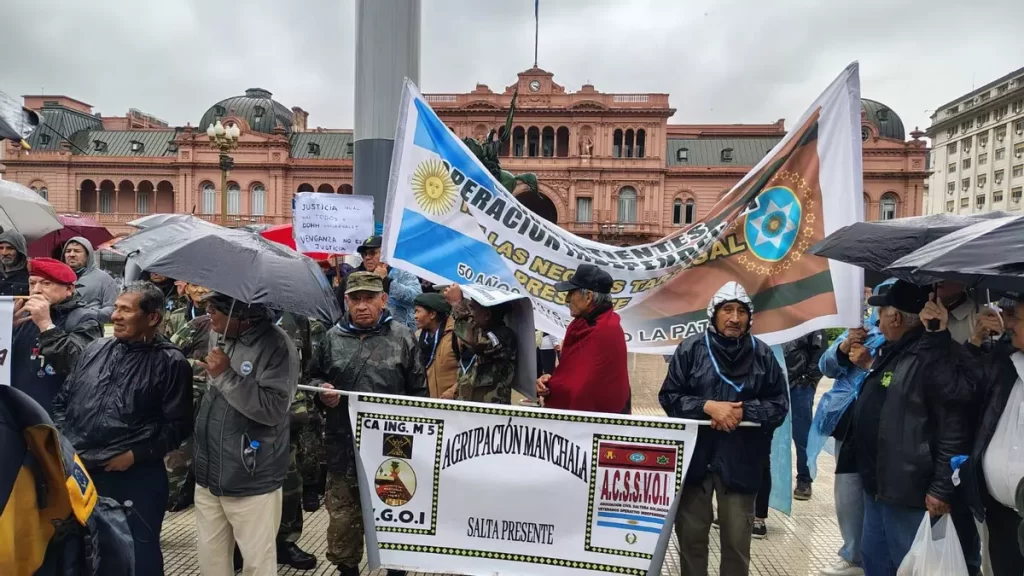 En otro sector de la Plaza de Mayo, Miguel Ángel Fontana, exsoldado que combatió en Tucumán, declaró que las Fuerzas Armadas actuaron “legalmente” para enfrentar “al extremismo y la subversión”, y relativizó las denuncias sobre centros clandestinos y desaparecidos, que consideró “exageradas” para sostener “crímenes de lesa humanidad”.