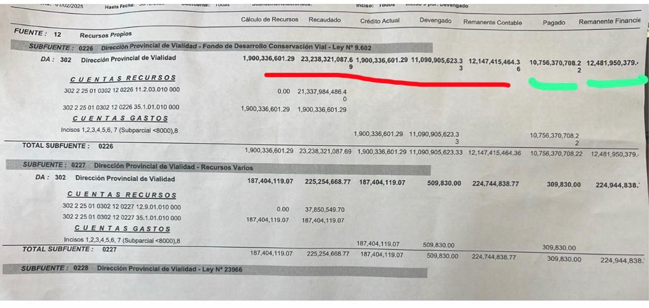 “Por ejemplo: de los $23.238 millones recaudados por el Fondo de Desarrollo y Conservación Vial (Leyes 9.602 y 11.142) que se origina en el 50% del Impuesto Inmobiliario rural, solo se ejecutaron $11.090 millones”, puntualizó el legislador haciendo referencia a la planilla de ejecución presupuestaria de la Dirección Provincial de Vialidad.