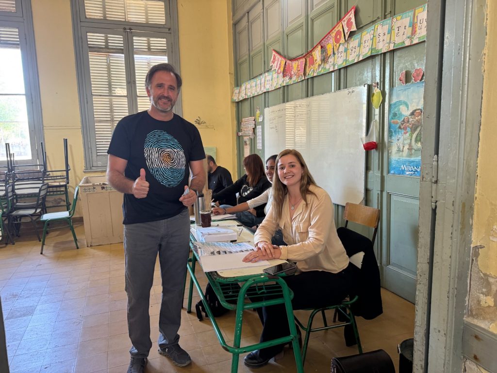 Joaquín Benegas Lynch votó en La Paz. El candidato a senador dijo que «este 26 tenemos la oportunidad de defender nuestra libertad, ser arquitectos de nuestro destino, rompiendo las cadenas de la esclavitud. La democracia no es solo ir a votar sino defender esa libertad todos los días».