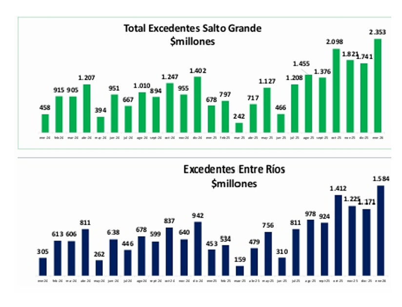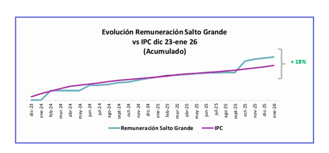 Uno de los puntos más destacados del documento es la evolución de la remuneración. En septiembre de 2025, el gobierno nacional otorgó un aumento del 27,85% exclusivo para Salto Grande, por encima del 0,5% aplicado a otras generadoras sin contrato. Según el estudio, esta decisión permitió recuperar ingresos en términos reales y, en consecuencia, un mayor flujo de recursos hacia Entre Ríos.