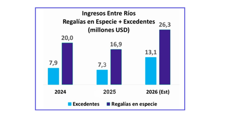 El régimen de regalías también sufrió modificaciones recientes. A través de la Resolución SE Nº588/2025, se amplió la posibilidad de que cualquier distribuidor de energía eléctrica designado por la provincia pueda ser titular del derecho de cobro de regalías, y se incrementó el porcentaje de cobro en especie del 30% al 50%. Bajo esta metodología, el cálculo establece que el 6% de la energía generada corresponde a regalías, de las cuales 70% son para Entre Ríos y 30% para Corrientes.