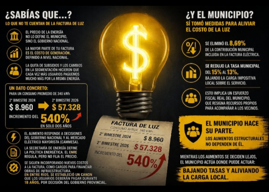 En el cierre, insistió con la idea central de su planteo: “Mientras los aumentos estructurales de la energía se definen fuera de la ciudad, el municipio actúa donde puede actuar: bajando tasas y aliviando la carga local”. Y agregó: “No alcanza, es cierto, pero también es cierto que es lo único que está a su alcance”.